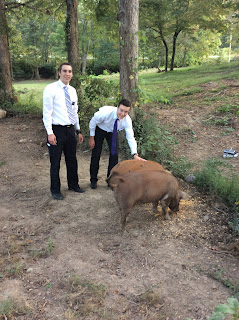 Sunday was Fast Sunday. After church we taught Kristin about how knowing that the Book of Mormon is true is essential to her conversion. I shared how I knew it was true along with Elder Wardle and the two members that had joined us that night. It was awesome. We then gave her a Priesthood Blessing to have strength to get over her smoking. She also said that the cinnamon we gave her had really helped. It was very spiritual in there and her kids were actually quiet for the first time too. Afterwards, we went out with a member named York. He moves like 100 mph, all the time. We went to see a family named the Mockerys. We talked with him and they had 2 pigs that we were able to pet -super cool. Then we went to the Riggs home to give their kids some toys. We talked with them for a while and when we left, we saw the super lunar eclipse happening. I guess it's when the moon is closest to the earth while there is a lunar eclipse. Because it is so close when it is covered, the whole thing looks red and it's called a blood moon. It happens like every 70 years. I don't know if any of you saw it, but it was pretty cool.